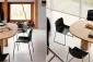 Het is mogelijk om aan het onderstel een link te bevestigen zodat de stoel niet alleen geschikt is in kantines, wacht- en vergaderruimtes maar ook toegepast kan worden in een congreszaal.
